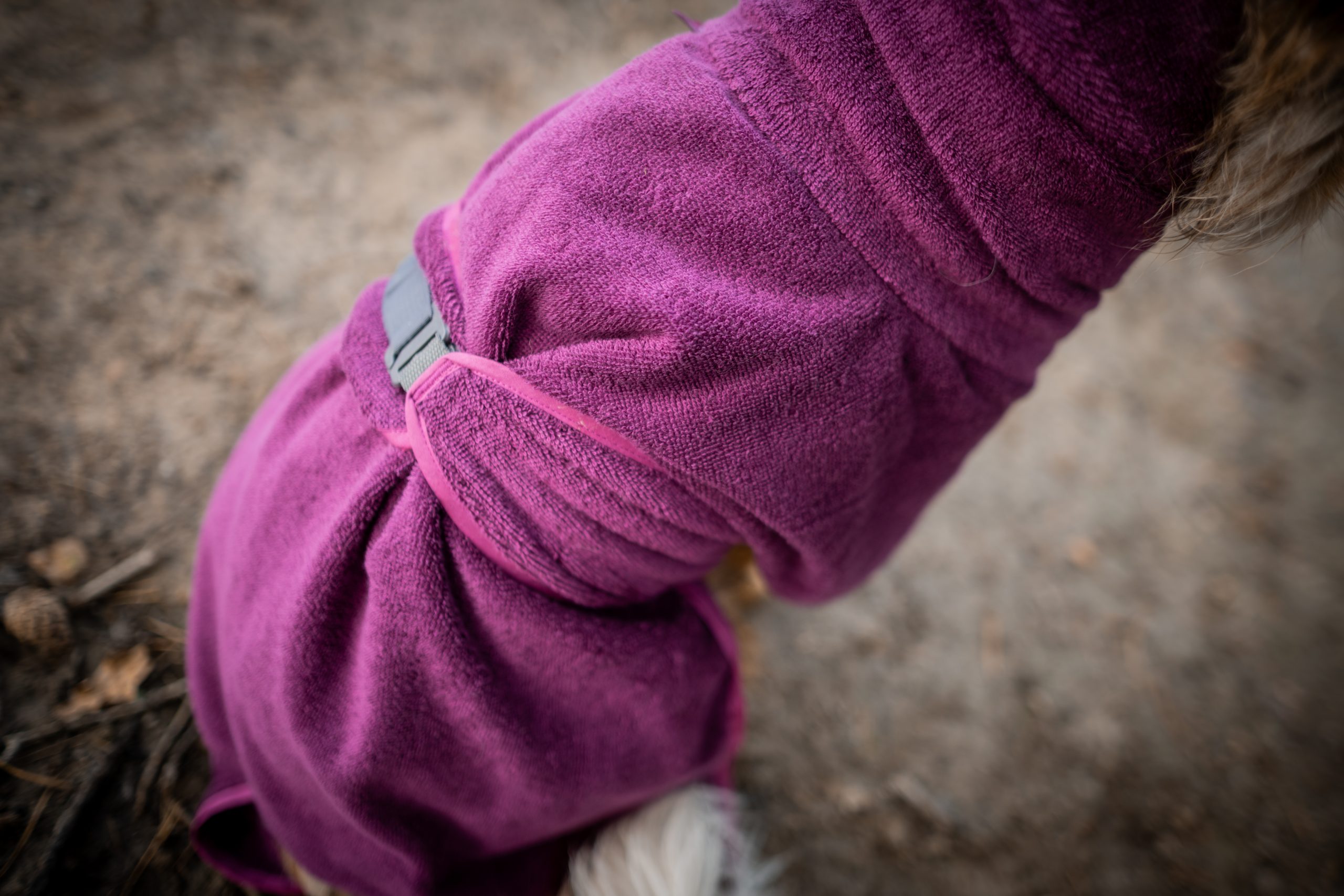 Auch der neue Pomppa Bath Bademantel für Hunde wurde mir vom Hersteller zur Verfügung gestellt. Die schicke Farbe „Plum“ gefiel mir sofort (auch wenn es natürlich von der Funktionalität her nicht auf die Farbe ankommt). Es gibt ihn noch in der Farbe „Midnight“, ein schickes dunkles Blau.