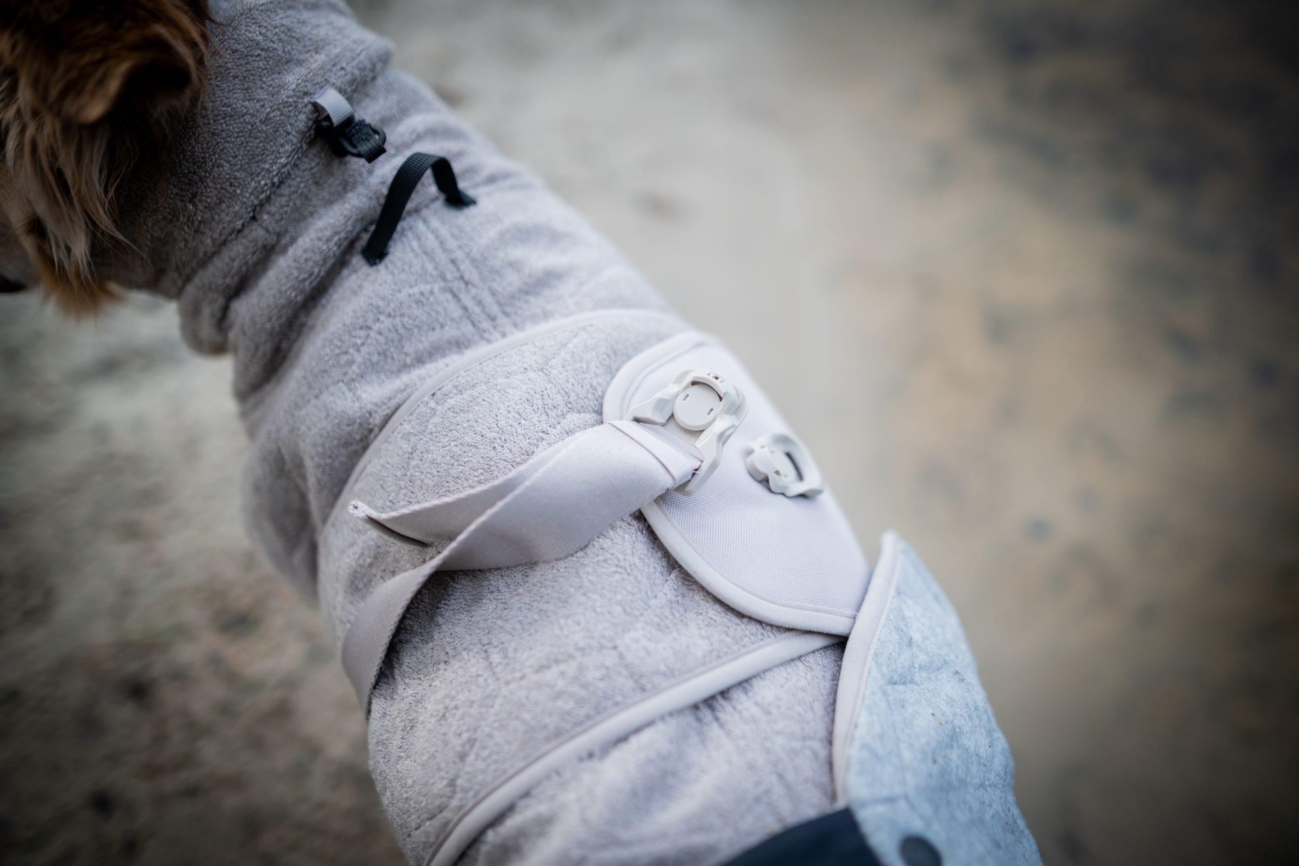 Die Verarbeitung ist – wie ich es auch von den Regenmäntel für Hunde und den Schwimmwesten für Hunde von Non-Stop Dogwear kenne – sehr hochwertig aus. Er hat eine starke Saugkraft. Was mir besonders gut gefällt, sind die vollständig abnehmbaren Beinschlaufen. Du musst die Beine nicht durch die Schlaufen eben, sondern kannst sie zum Beispiel an einem Knopf öffnen und dann einfach um das Bein rum legen. Das ist ein großer Vorteil, wenn Dein Hund Probleme im Bewegungsapparat hat. Auch die zusätzliche Möglichkeit, ihn unter der Rute zu verschließen und die durchdachte Wickeltechnik mit einem hochwertigen Verschluss sprechen für sich.