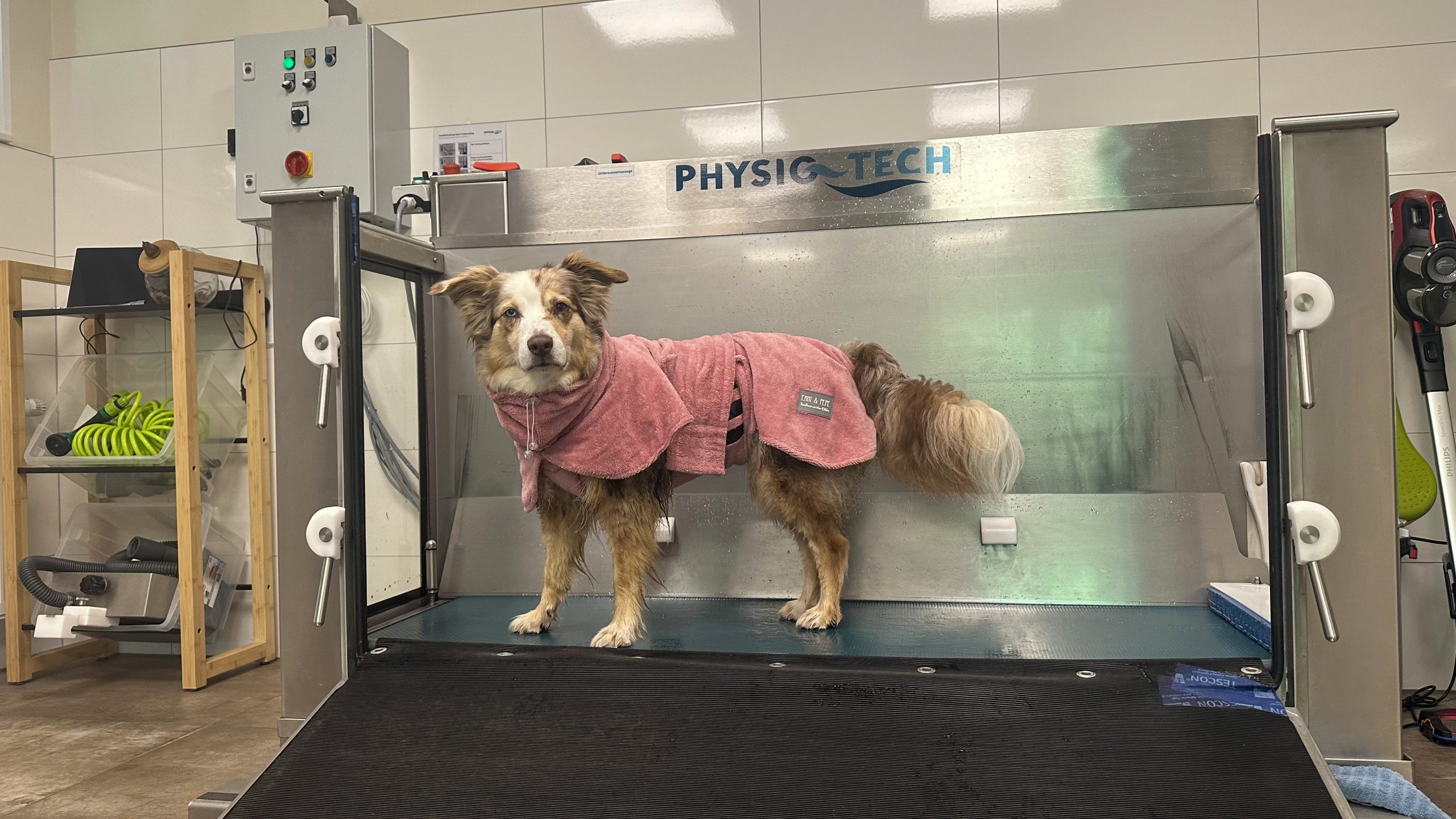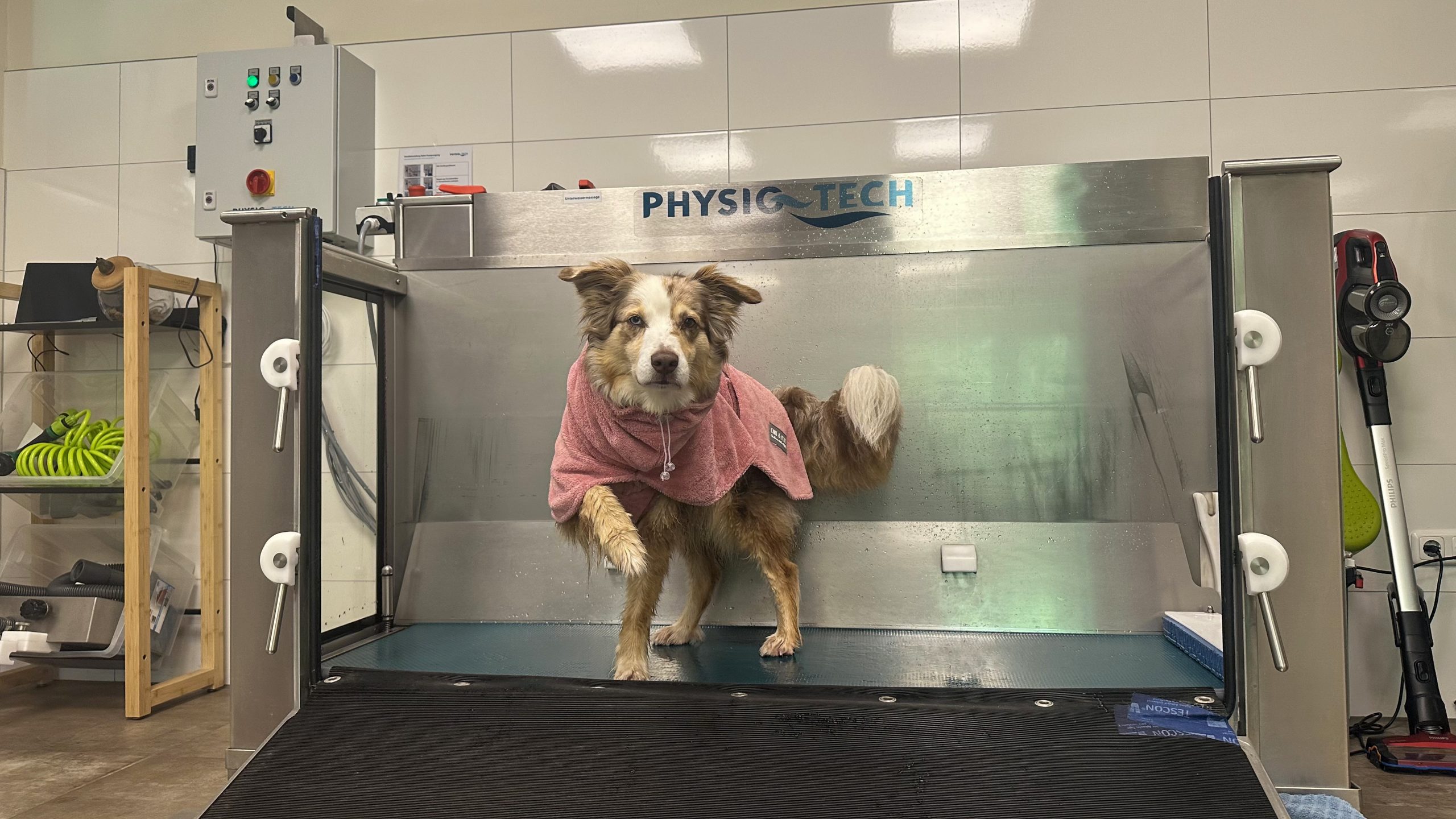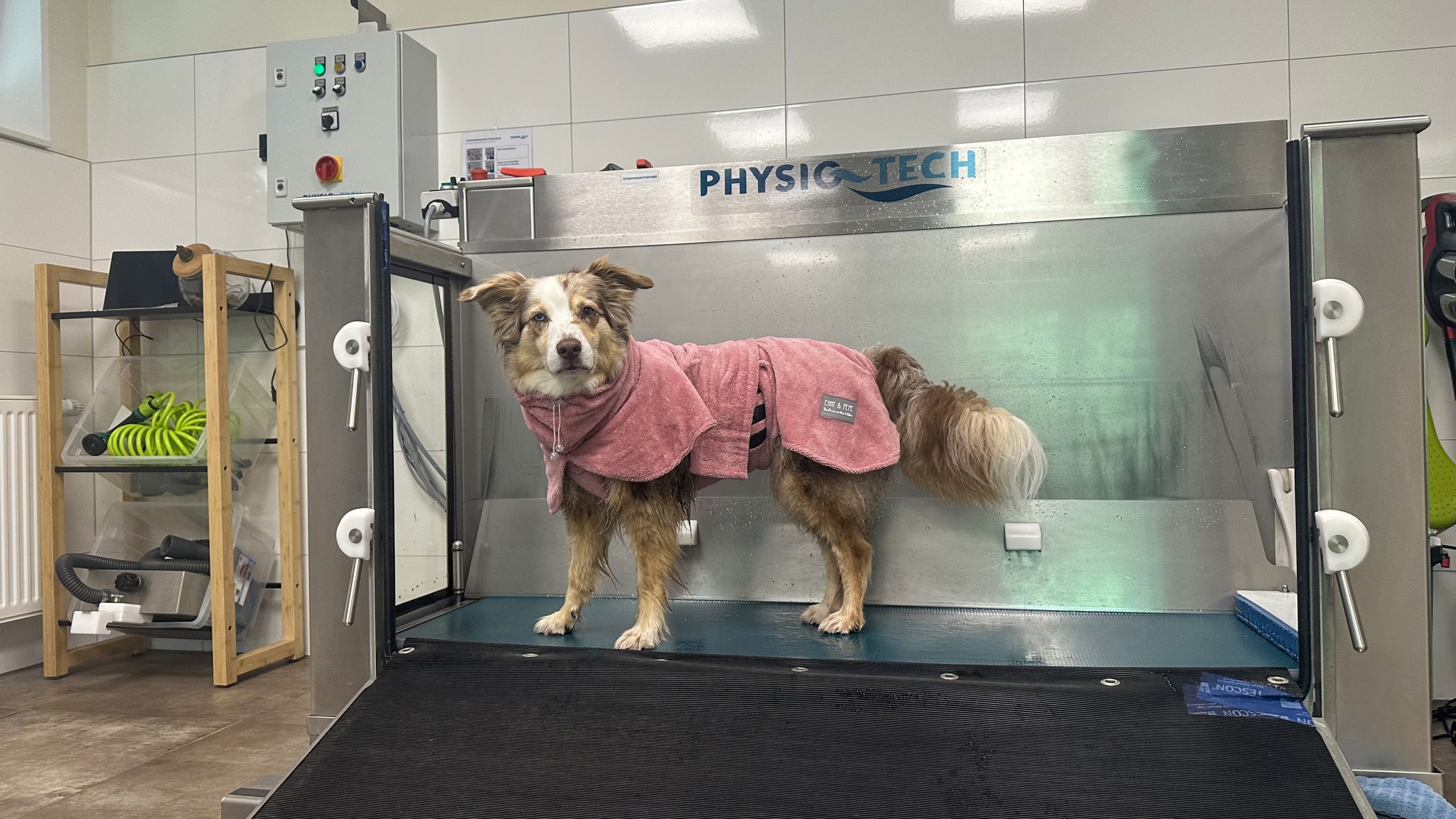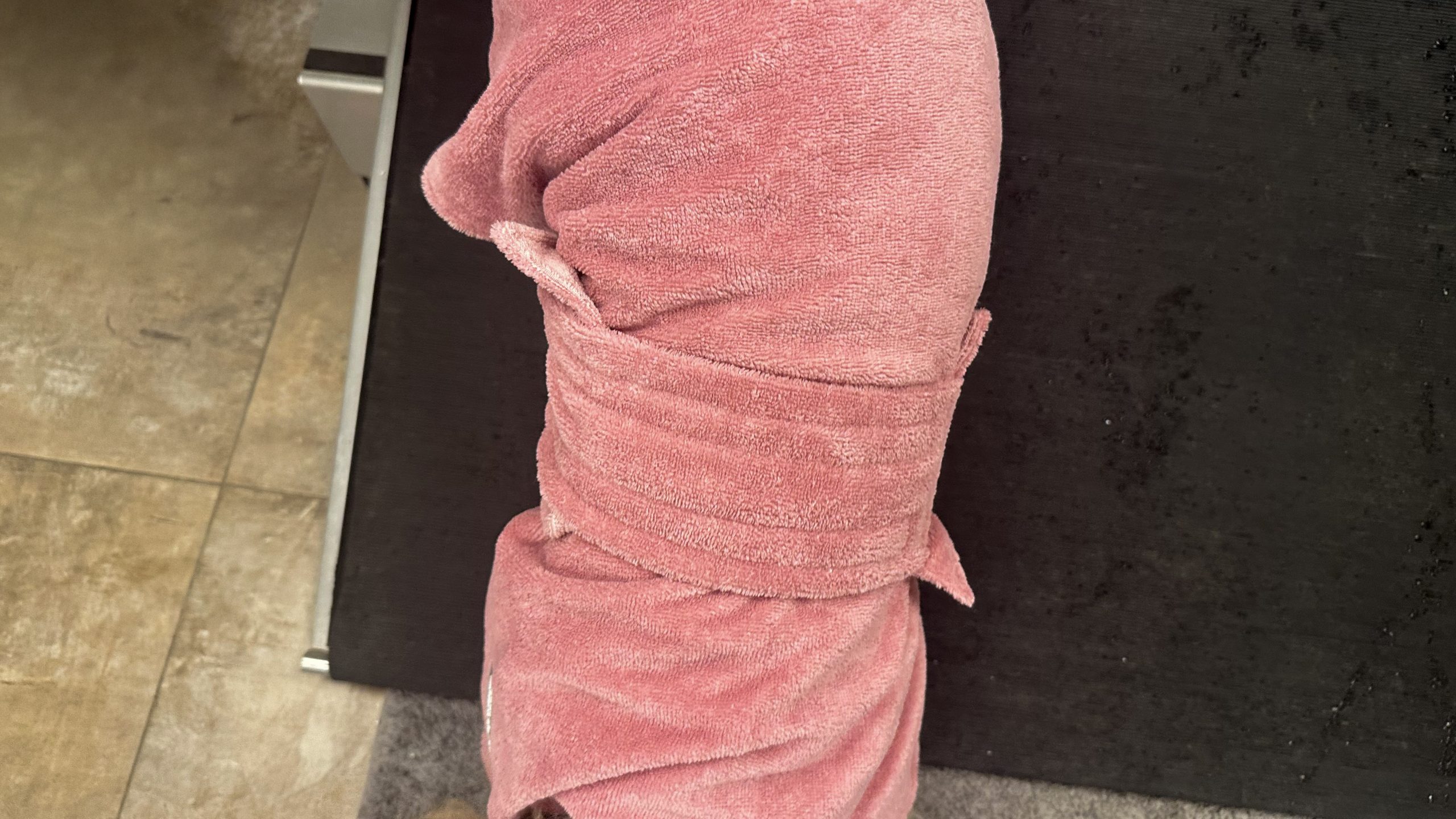 Der Hundebademantel von Emmy & Pepe fühlt sich wie ein Bademangel für Menschen an. Er lässt sich sehr leicht anziehen. Für Mira ein großer Vorteil: Er kommt ohne Gummibänder an den Beinen aus. Halt hat er durch die Öffnung für die Rute und die Wickeltechnik mit einem hochwertigen Klettverschluss. Er absorbiert die Feuchtigkeit gut. Da er sich so leicht falten kann, nehme ich ihn gerne mit, wenn wir zur Physiotherapie für Hunde fahren. So kann ich ihn einfach in Miras kleine Physio-Tasche stopfen.