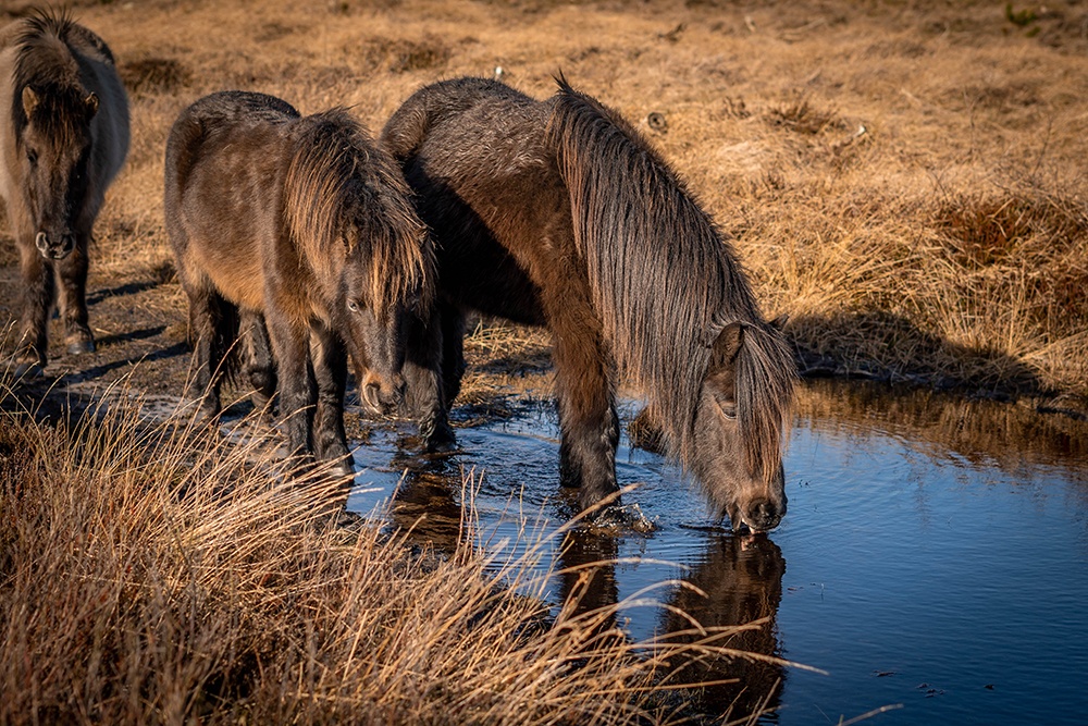 Wir entschieden uns für einen anderen Wanderweg, da unser eigentliche Weg in den Dünen immer wieder unter Wasser stand – bis wir plötzlich in der Ferne etwas entdeckten. Ich fragte Jule, ob das ein Tier oder ein Baum sei (natürlich lag meine Brille im Auto). Im nächsten Moment erkannten wir es dann Beide: Eine Herde Islandpferde, die direkt am Weg mitten in den Dünen grasten. Wir konnten an ihnen entlang laufen und tolle Bilder aufnehmen. Ein unvergessliches Erlebnis.