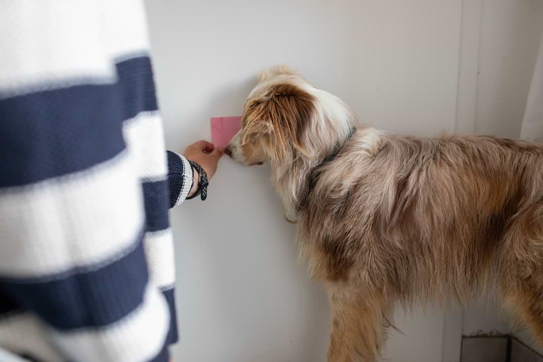 Um Deinem Hund beizubringen, eine Tür selbst zu schließen, bringst Du ihm als erstes bei, ein Target zu berühren (mit der Nase oder der Pfote). Jede Annäherung an das Target wird belohnt (Ob Du mit oder ohne einen Clicker arbeitest, ist Dir überlassen. Ich persönlich nutze gerne den Clicker, um punktgenau belohnen zu können). Sobald Dein Hund verstanden hat, das Target zu berühren, belege es mit einem Wort. Später näherst Du Dich dem Objekt, welches er später bewegen soll. Dieses passiert in kleinen Schritten. Irgendwann kannst Du das Target dann an die Tür halten / kleben. Alles weitere geschieht von ganz allein.
