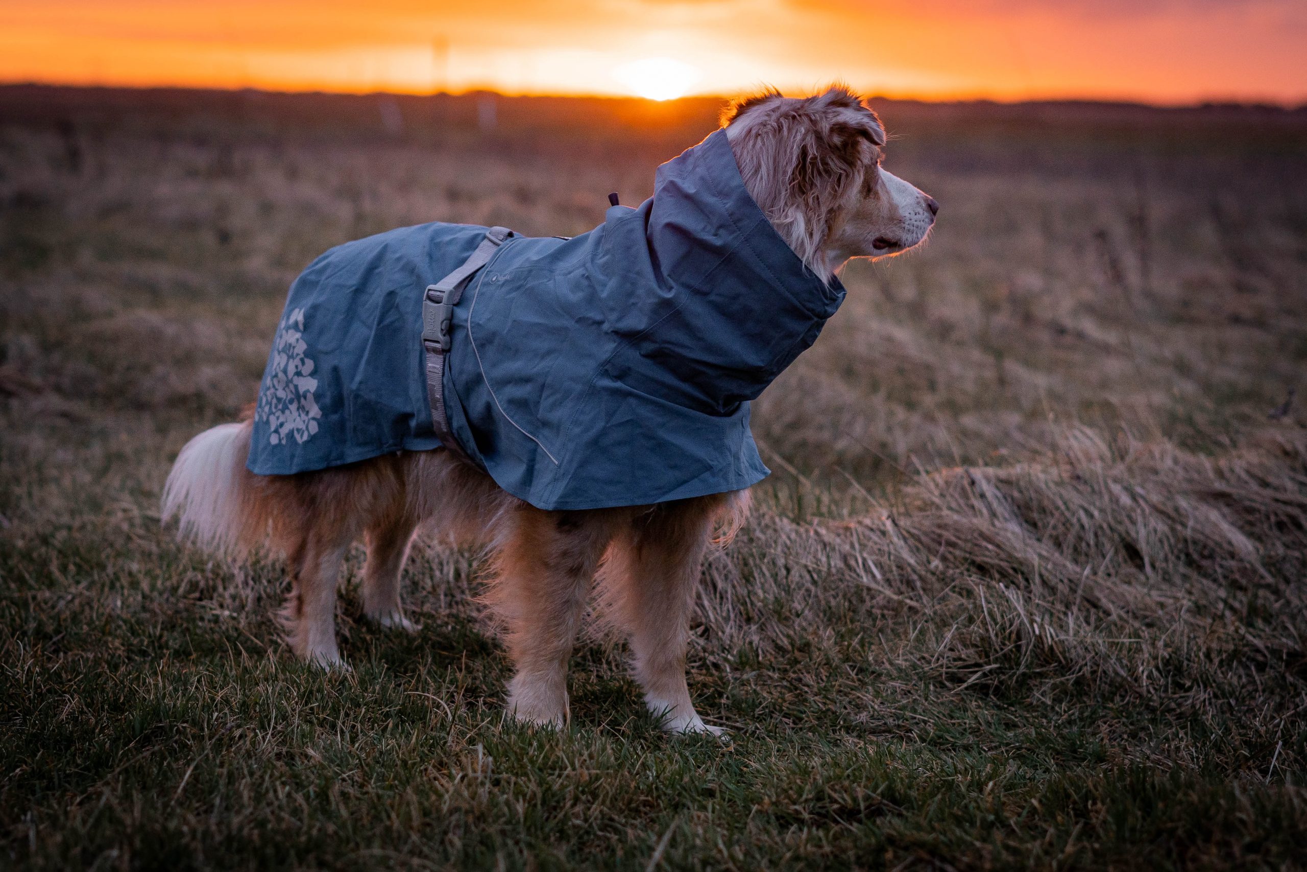 Über die Sinnhaftigkeit eines Hunderegenmantels lässt sich mit Sicherheit streiten. Mira stört Regen meist nicht. Nur Regen, der gepaart mit Wind frontal von vorne kommt, ist für sie unangenehm. Sie kneift die Augen zusammen, weil die Regentropfen in den Augen pieksen. Sie ist aber kein Hund, der bei Regen den Spaziergang verweigert. Dennoch nutze ich Regenmäntel für Hunde auch für sie. Deswegen lass uns mal auf mögliche Gründe schauen, wann und warum ein solcher „Rain coat“ für Deinen Vierbeiner nützlich ist: