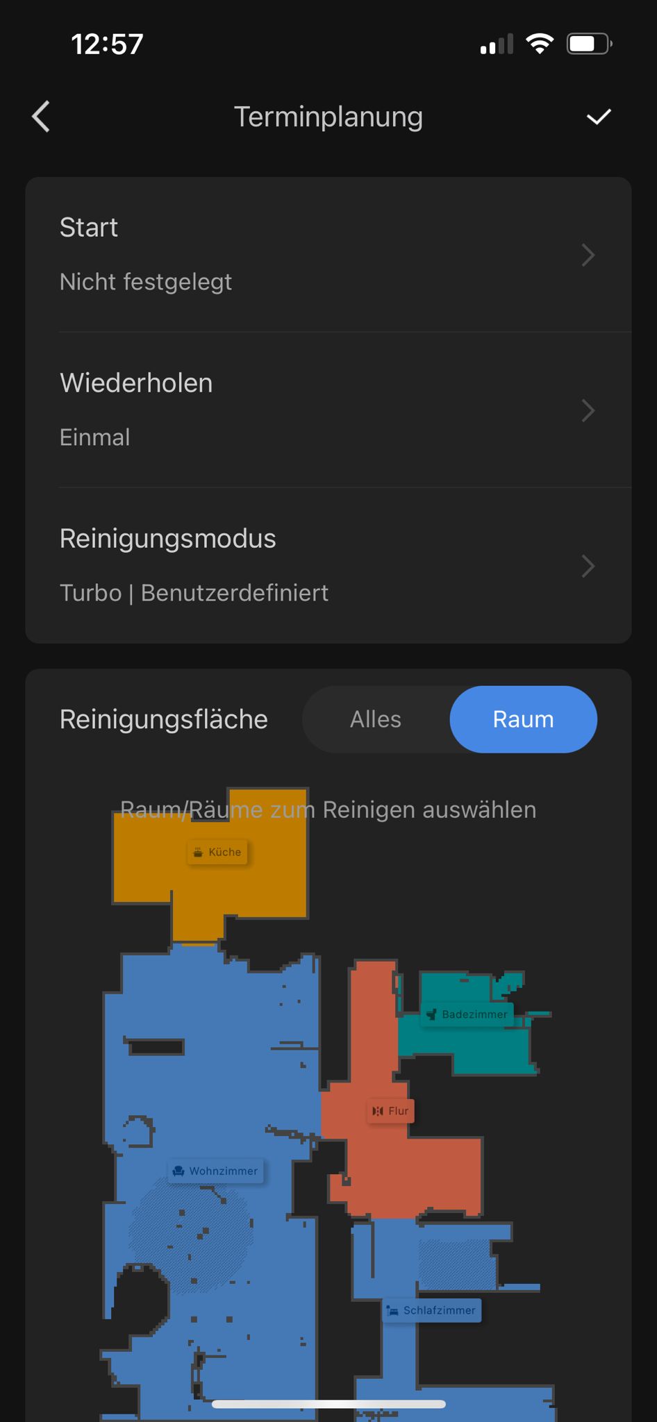 Ich zeige Dir hier mal verschiedene Möglichkeiten der Einstellung. Du kannst vieles individuell festlegen. Ich selbst habe keine Terminplanung festgelegt. Da Mira nach wie vor Angst hat, wenn mein Roborock Q revo fährt, starte ich ihn nur, wenn ich zu Hause bei ihr bin oder sie nicht im Haus ist.