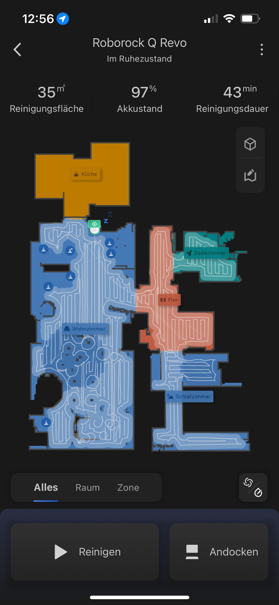 Ich lasse den Roborock täglich ein Mal durchfahren.