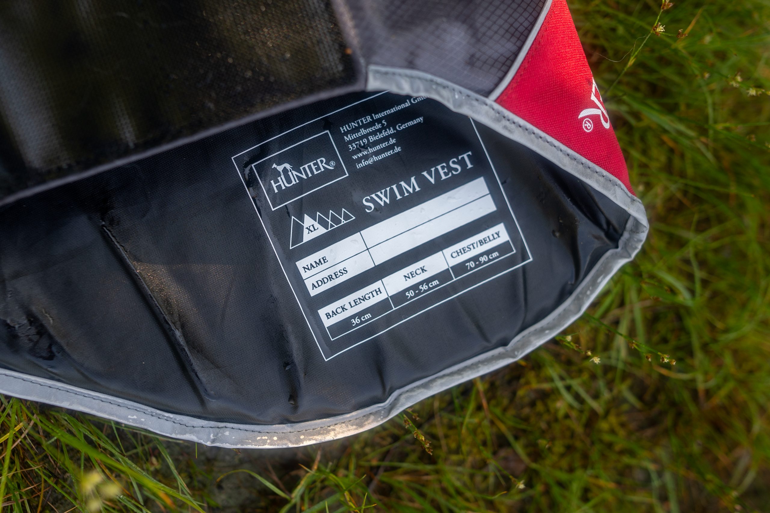 Ich hatte mir zuerst nach dem Ausmessen von Mira die Hunter Moss Schwimmweste für Hunde in der Größe L zuschicken lassen. Mira hat einen Umfang von 65-66cm und L hätte passen müssen. Allerdings war diese leider doch zu klein und ich konnte den Klettverschluss nicht schließen. Nach kurzem Kontakt mit Hunter wurde mir die Weste problemlos in XL ausgetauscht (herzlichen Dank an dieser Stelle – es lief alles reibungslos und unkompliziert, ich bin begeistert!).