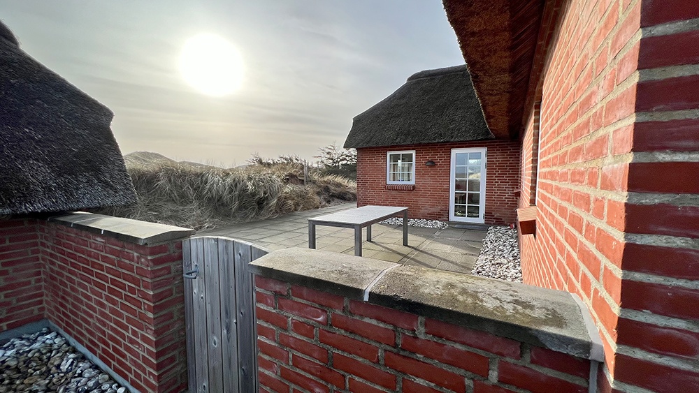 Das Haus ist nicht eingezäunt. Auf den Terrassen blickst Du direkt auf die Dünen. Genauso hatte ich es mir vorgestellt! Zwar gibt es Häuser in der Umgebung, allerdings ist zum nächsten Haus etwas Platz, sodass Du nicht gestört wirst. Das Haus liegt nahe an der Straße.