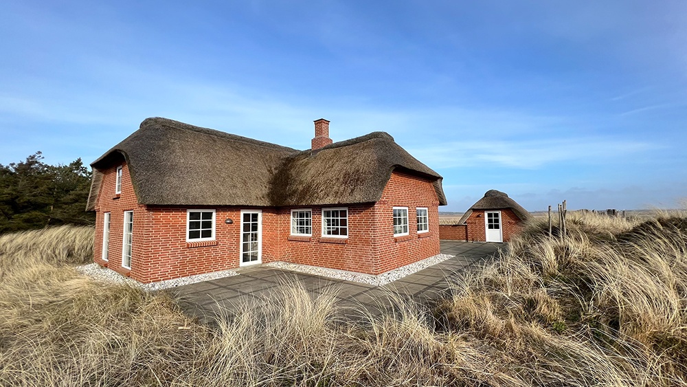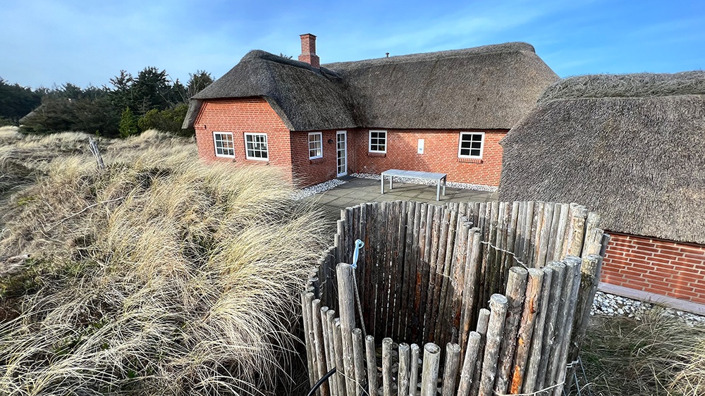 Durch Jules Erfahrung flossen aber noch einige andere Punkte in die Auswahl unseres Hauses ein und irgendwann stolperte ich über „DAS“ Haus: Ein Reetdachhaus in ruhiger Lage – Natur pur! Du findest es auf der Esmark-Seite unter L6851. Das Haus liegt in Vedersö Klit, was von uns ausgesehen zirka sechs Stunden Fahrtzeit sind. Nur ungefähr 300 Meter vom Strand entfernt liegt es in der Nähe der kleinen Stadt Søndervig.