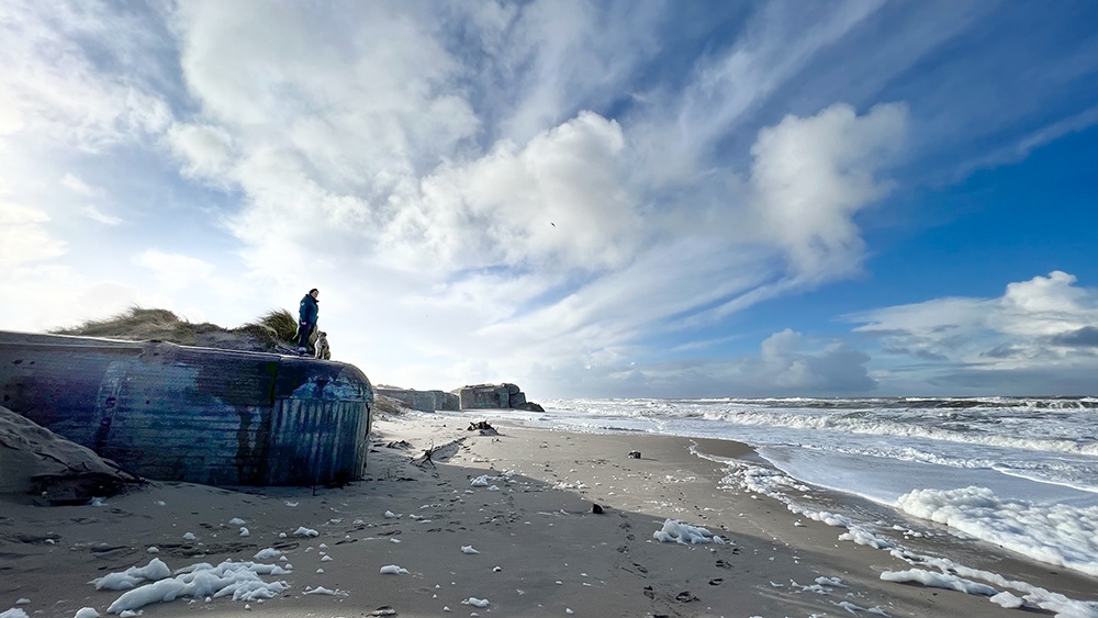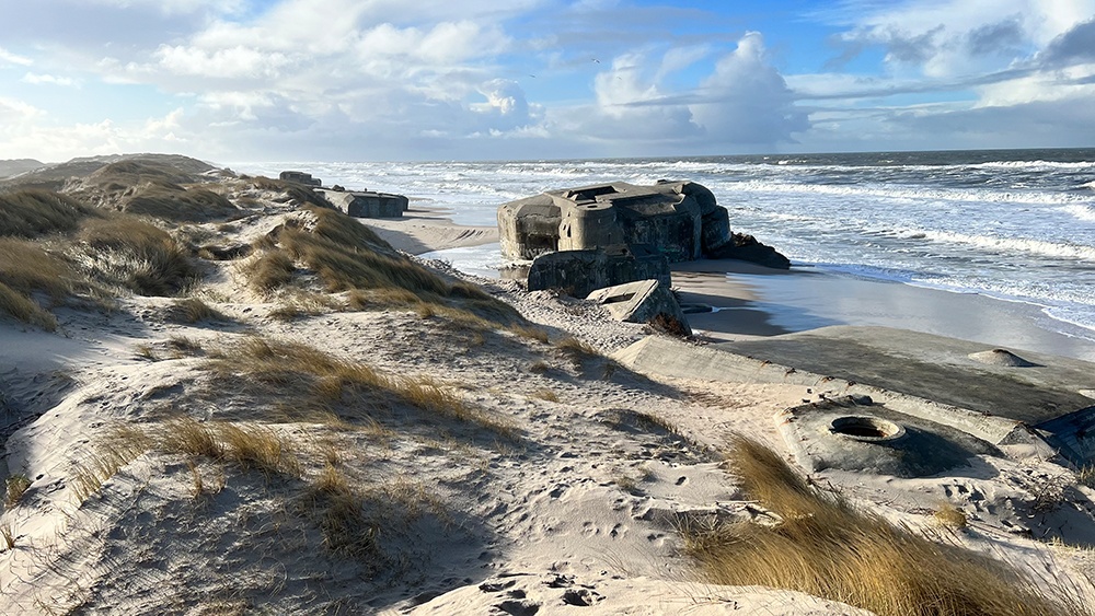 Der Houvig Strand war kaum zehn Minuten mit dem Auto von unserem Haus entfernt. Überall am dänischen Strand stehen alte Bunker aus dem zweiten Weltkrieg. Am Houvig Strand sind besonders große Bunker. Als wir uns diese anschauten, war es besonders bedrückend, da gerade erst Russland den Krieg auf die Ukraine begonnen hatte.